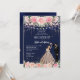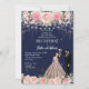 Gold glitter navy blue pink flowers wedding reception invitation template instant download.
