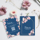 Navy Blue Pink Magnolia Floral Wedding Reply By RSVP Card