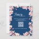 Navy Blue Magnolia Floral Wedding RSVP Card with QR Code | Blush Pink Flowers & Gold Arch | Elegant Reply By Card.