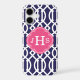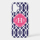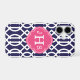 Navy Blue & Pink Modern Trellis Monogram