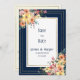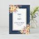 Navy blue pink orange gold floral Save the Date Invitation