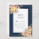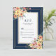 Navy blue pink orange gold floral spring RSVP Invitation