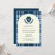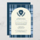 Navy Blue Plaid Monogram Boy's Baby Shower Invitation