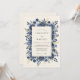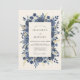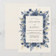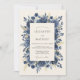 This design features a lush arrangement of navy blue roses and botanical leaves accented by shimmering metallic gold foliage. Dark florals and greenery surround the centre against a cream background, creating a sophisticated and moody aesthetic. The composition provides a regal and timeless feel perfect for a formal winter or autumn event.