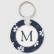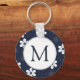 Pretty navy blue and white modern floral pattern on personalised keychain.