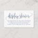 An elegant and simple display shower card features a whimsical script and simple typography. This navy blue display shower card is perfect for bridal showers, baby showers, wedding showers, and so much more. Personalise by adding your own details.