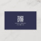 This navy blue business card features crisp white serif typography for a classic, elegant look with a modern edge. The rich blue tone appears on both sides, giving the card a clean and refined feel that fits any professional style. The front includes your photo, name, title or business name, and contact details in a polished layout that feels personal and professional. The back highlights a scannable QR code and simple social media icons with the phrase "Connect with us!" to make it easy for clients to reach you. The high-contrast design can be customized with your own colors, fonts, and details, making it a versatile choice for consultants, entrepreneurs, creatives, and anyone who wants a sophisticated, minimal card that leaves a strong impression.