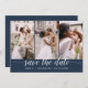 QR Code - Modern and Elegant Landscape Horizontal Three (3) Photo Save the Date Wedding with hand lettered script typography. The save the date invitation magnet includes script typography and chic and simple design that you can add your customised engagement photograph picture to.