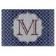 Navy Blue Quarterfoil Lattice Quarter Foil Monogram Initial Personalised Custom Fabric Pattern Glass Cutting Board