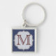 Navy Blue Quarterfoil Lattice Quarter Foil Monogram Initial Personalised Custom Fabric pattern Key Chain