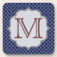 Navy Blue Quarterfoil Lattice Quarter Foil Monogram Initial Personalised Custom Fabric Pattern Drink Coaster