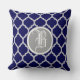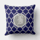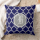 Navy Blue Quatrefoil Pattern Monogram Cushion