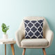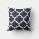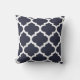 Navy Blue Moroccan trellis pillow. Made in the U.S.A. Decorative throw pillows with a geometric quatrefoil pattern in contemporary colours.