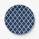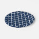 Navy Blue Quatrefoil Tiles Pattern Paper Plate