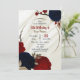 romantic navy blue and red flowers and gold bronze leaves on marble background botanical geometric birthday party invitation