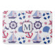 A fun nautical pattern is the feature on this colourful bath mat. Images in the pattern include starfish, seashells, a ship's wheel, an anchor, a banner, and a sailboat. The navy blue, medium blue and red pattern is placed on a white background. Your monogram is on a white banner that is lined in matching red and blue, and placed at the centre. A beautiful addition to any bathroom, and personalised just for you. Be sure to see the matching towel set and shower curtain in our store.