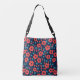 Navy Blue Red Poppy Floral Print Pattern Crossbody Bag