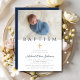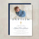 Navy Blue Religious Cross Boy Baptism Photo Invitation