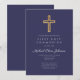 Custom Navy Blue Religious Cross Boy First Communion Invitation.