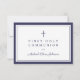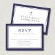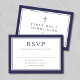 Navy Blue Religious Cross Boy First Communion RSVP Card