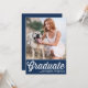 Invite guests to your event with this customisable photo graduation invitation. It features a retro bold script and classic typography. Personalise by adding your details. This navy blue graduation invitation is also available in other cardstock and colours.