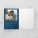 Vintage and simple wedding thank you card featuring a white arch frame with a text that says "love & thanks" in a retro style font with stars in navy blue. The default message on the back is editable. A second square picture can be added on the back of the card.
