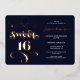 Rose gold and navy blue retro script photo Sweet 16 birthday party invitation with real rose gold foil.