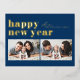 Happy New Year! Send your holiday greetings to family and friends with this customisable photo New Year postcard. It features retro bold typography on a navy blue background. Personalise by adding your details. This gold foil New Year postcard is available on other cardstock. Matching items are available.