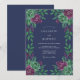 A deep navy blue backdrop sets a moody tone for this design, which features a lush arrangement of watercolor roses in shades of plum and emerald green. Intricate foliage and verdant leaves accent the design, creating a rich and sophisticated botanical look. Ideal for an elegant winter evening, the artwork combines classic floral motifs with a bold, dark palette.