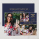 This modern nursing graduation party invitation can be personalised with your 3 special grad photos and celebration details set in gold typography on a navy blue background. Designed by Thisisnotme©