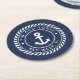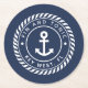 Navy Blue Rope & Anchor Boat Name Round Paper Coaster