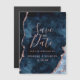 Navy Blue Rose Gold Agate Marble Save the Date Magnetic Invitation