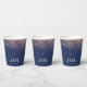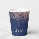 Navy Blue Rose Gold - Blush Pink Glitter Monogram Paper Cups