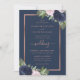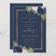 Complement your navy blue and rose gold wedding party with these elegant floral wedding invitations with a modern script.