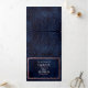 Navy Blue Rose Gold Confetti Registry Detail RSVP Tri-Fold Invitation