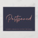 Navy Blue Rose Gold Foil Wedding Postponement Postcard
