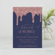 Navy Blue Rose Gold Glitter Drips Brunch Bubbly Invitation