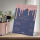 Navy Blue Rose Gold Glitter Drips Price List Pedestal Sign