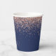 Navy Blue Rose Gold Glitter Monogram Paper Cups