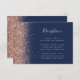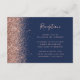 Navy Blue Rose Gold Glitter Wedding Reception Enclosure Card