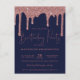 Elegant Navy Blue and Rose Gold Sparkle Glitter Drips Any Year Birthday Invitation Postcard featuring faux glitter drips and chic navy blue background. There is an optional filter to help set off the white text at the bottom; it can be turned off by clicking "customise further" and deleting that layer. Designed by Cedar and String. To personalise further, please click the "customise further" link and use the design tool to modify the design. If you need assistance or matching items, please contact us at cedarandstring@gmail.com