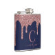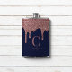 Navy Blue Rose Gold Sparkle Glitter Drips Monogram Hip Flask