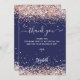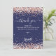 A navy blue background, decorated with rose gold confetti. Large hand lettered script and the text: Thank You. Personalise and add your thank you note and name.