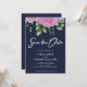 Navy Blue watercolor pink roses with white handwritten font customisable "Save the Date" invitation. This design features beautiful pink roses and a large calligraphy style font which you can change to any other colour you like. You can also personalise all details and text colours on this Save the Date template.