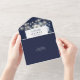 This all-in-one wedding invitation features elegant navy blue and white flowers, string lights, and modern typography. The invitation includes a perforated RSVP card that can be individually addressed or left blank so you can handwrite your guest's address details. Designed by Thisisnotme©