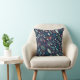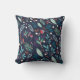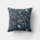 Navy Blue Rustic Floral Folk Art Pattern Pillow