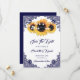 Navy blue and sunflower wedding save the date card featuring sunflowers, string lights and elegant floral lace. Matching items available.