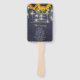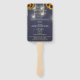 Rustic elegant wedding ceremony program hand fan template featuring sunflowers bouquets and strings of twinkle lights on a dark midnight blue chalkboard background.+++++++++ Personalise it with your details! ++++++++++ Suitable for rustic country | summer night garden or autumn fall outdoor weddings.