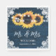 Navy Blue Rustic Wood Lace Sunflower Wedding Napkin