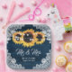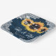 Navy Blue Rustic Wood Lace Sunflower Wedding Paper Plate